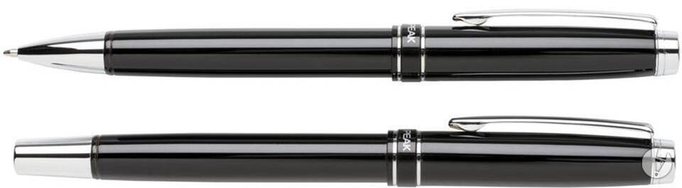 The Swiss Peak collection speaks the language of modern elegance. Luxury brass metal ballpen and rollerball set packed in Swiss Peak giftbox. Both metal refills with minimum of 1200m writing length and German ink.