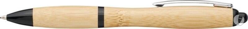 Ballpoint pen with click action mechanism, with a barrel made of bamboo, accented by a chrome clip and plastic trims.