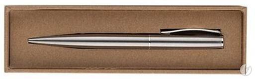 Metal ballpoint pen made of recycled stainless steel, packed in a cardboard box.