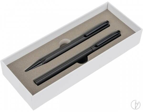 Elegant writing set from MoLu, consisting of a ballpoint pen and a roller pen. This set impresses with its unusual triangular shape, which is not only stylish, but also fits perfectly in the hand. The unique design, which was developed in accordance with the principles of the golden ratio, perfectly combines aesthetics and ergonomics